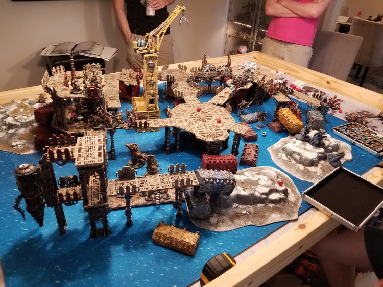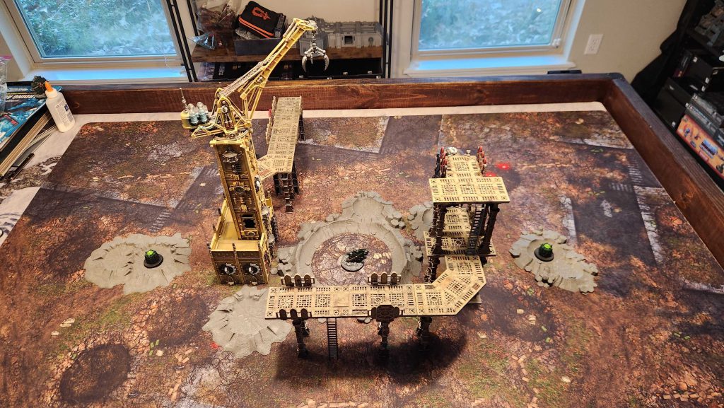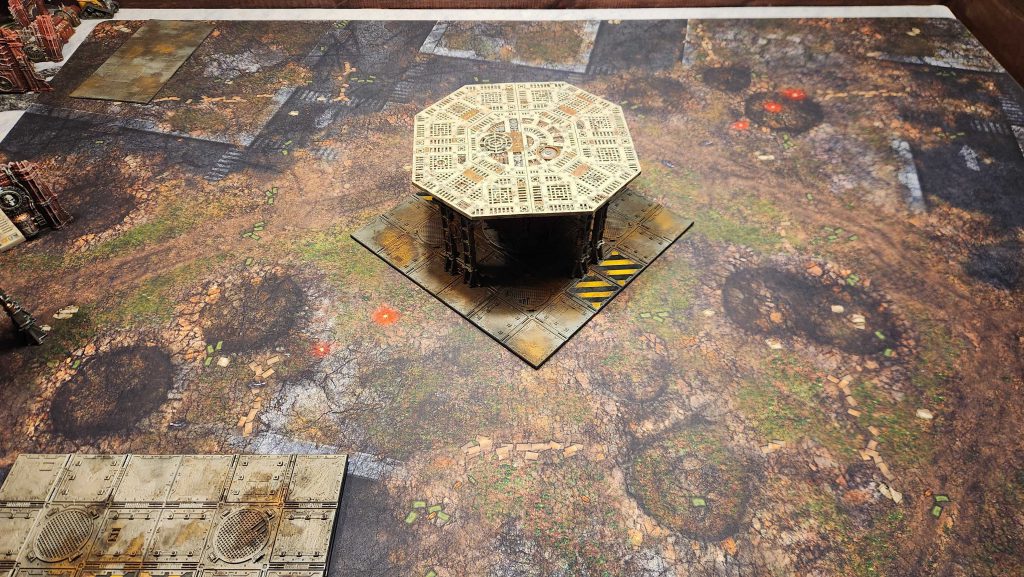 For this plan to work on an objective in the middle of the table we need two key things: First, some solid line-of-sight blocking beneath it, and second, a large platform to define it. This won't work unless multiple units can be on there fighting at the same time, and so it has to be large enough to hold the objective