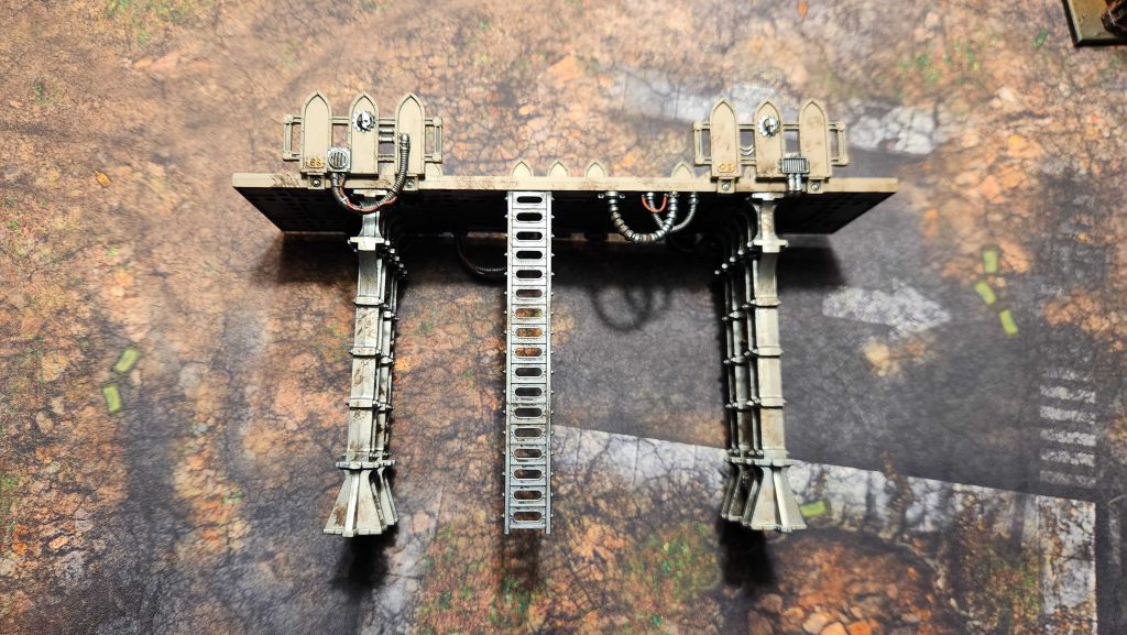 I've put this all on a Necromunda Zone Mortalis tile, which both eats up a big 12x12" area to block line of sight, but also makes enough sense given what the underside of the terrain looks like - there's enough coverage under there that infantry can move through but that you'd be OK saying "yeah ok, that blocks line of sight."