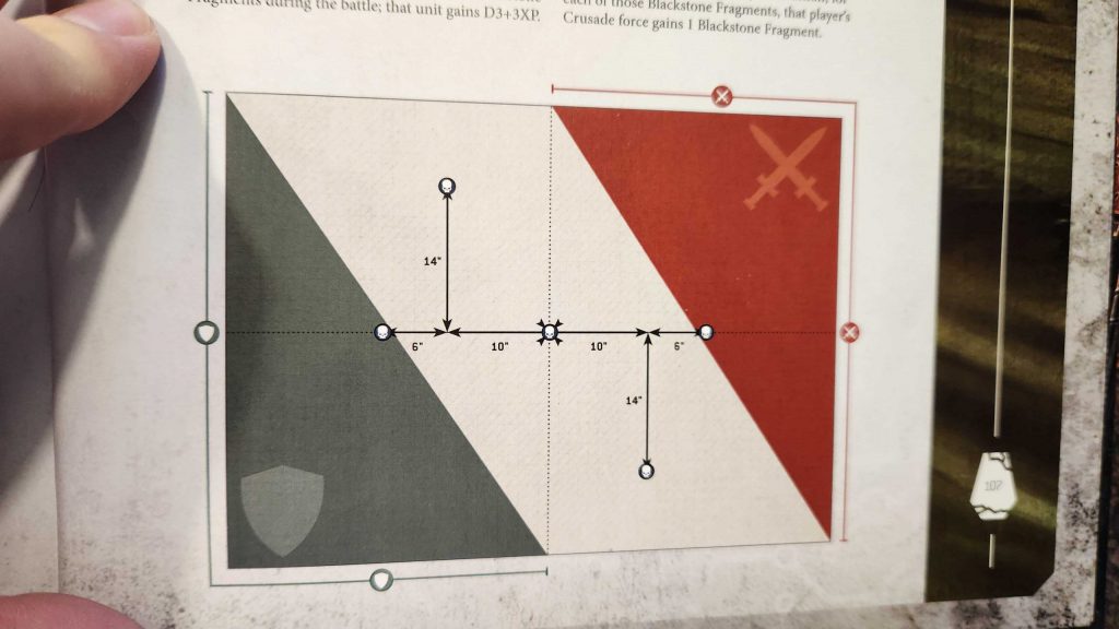 This mission features a 12" diameter circle in the middle of the table in which units do not get invulnerable saves. That's pretty insane and I don't think it's an amazing mission, but it's a more interesting one to build around, and it uses Dawn of War deployment.