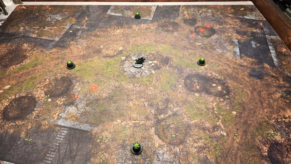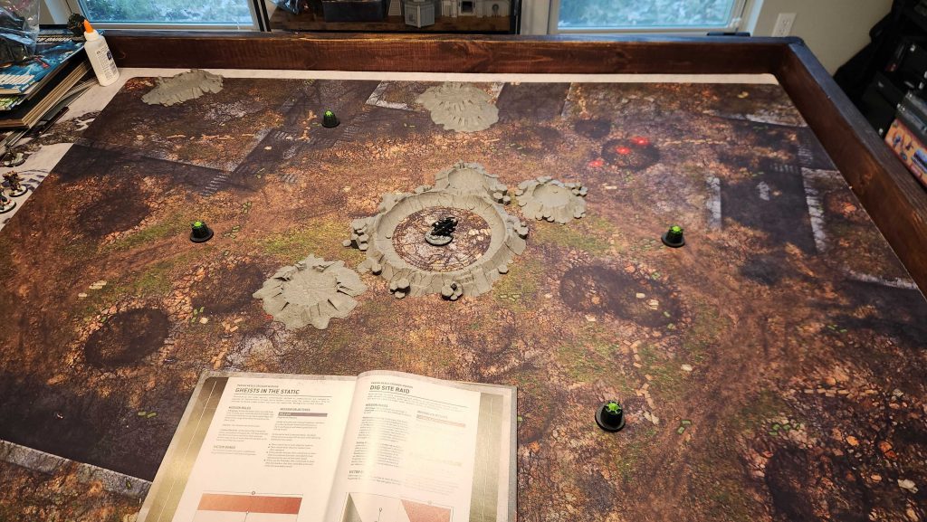 This one starts with a dig site. I've got five objectives, with the central one being in a dig crater. I've got some neat 3d-printed craters I can use for this.