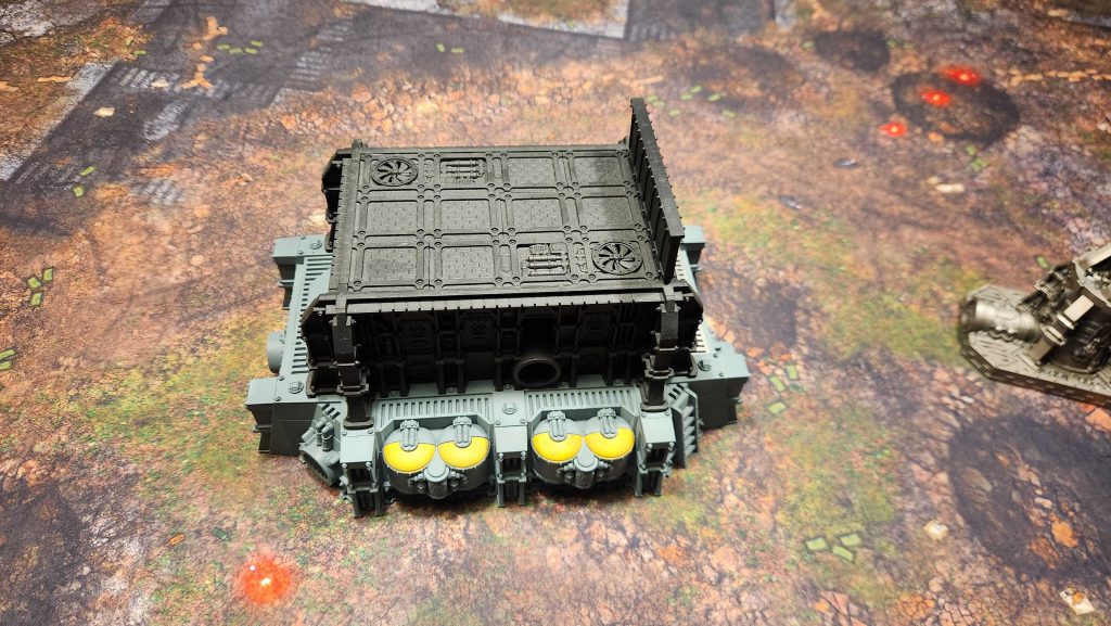 That's where the buildings come in - theoretically, anyways. There's a huge problem with big closed buildings in Warhammer. They take up a ton of space and unless you can embark within them similar to a fortification (something 40k rules don't really support), units will need to either hide behind them or move over them. And while they're doing either they tend to be completely exposed, stopping whatever benefit you'd like them to have.