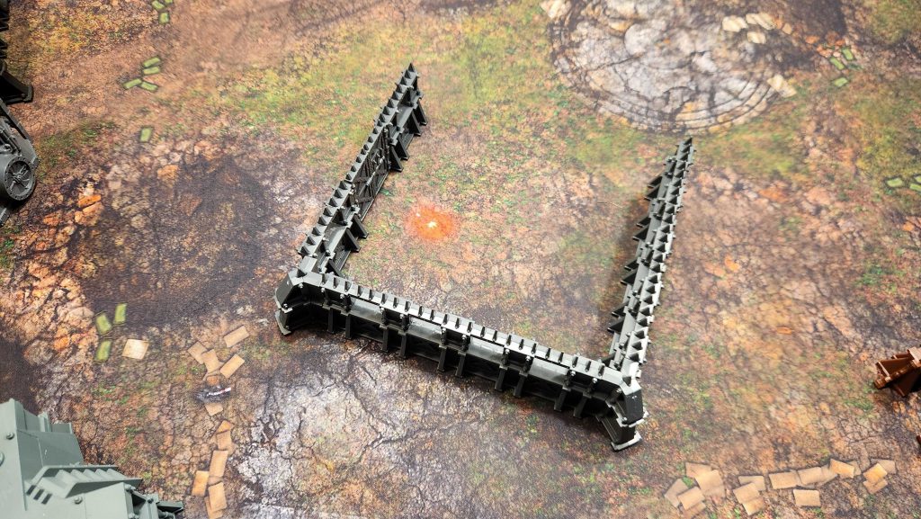 The fences here are really bad. They're too short to hide anything and too long to easily work with. They're best used for providing cover for infantry units but that's about all they do, and unfortunately the benefit of cover isn't enough to save units from good shooting. They're OK to have around objectives but you need to pair them with line-of-sight blockers which force opponents to actually come over to the objectives and fight for them.