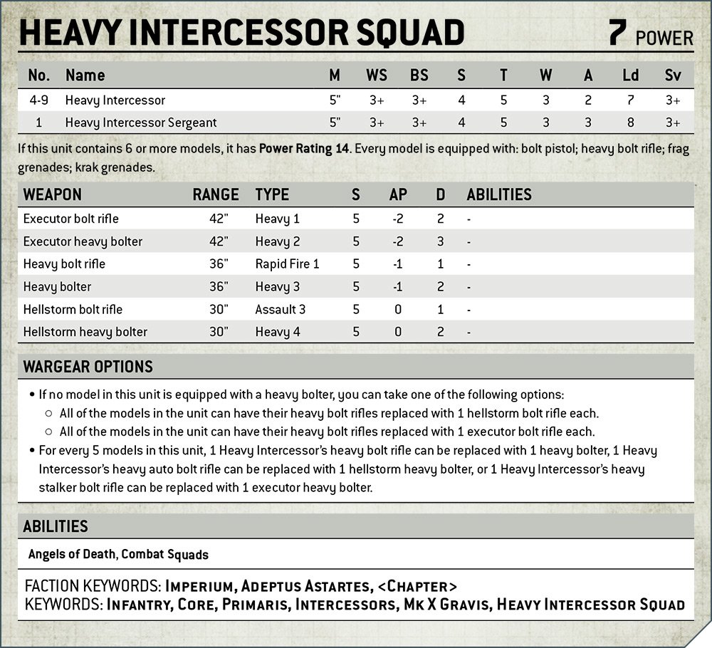 Heavy Intercessor Datasheet. Credit: Warhammer Community
