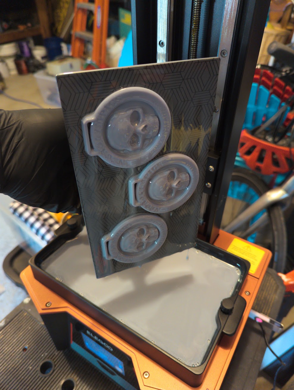 The image above shows three large medals that I was able to print on the plate of the Saturn 3 12K with room to spare; a smaller printer like the Mars would be able to barely fit two. The level of detail on the printer is very high and you can easily make high quality parts for miniatures and game pieces. The size of the printer also makes it viable for larger functional parts as well, especially when combined with tougher resins that aren't going to shatter if you drop them. In the case of failed builds stuck to the FEP you can use the "tank clean" feature to cure the entire bottom layer which can then be removed in a few seconds.