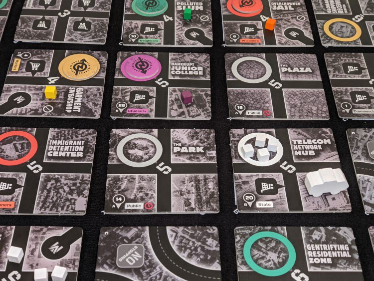 As we were crushed by bad dice rolls and awful card draws I thought of how Area Boardgamer™ might complain about Bloc by Bloc being too “swingy.” But the randomness here is intentional, because that’s how this world – our world – works. In Bloc by Bloc, asymmetrical is another word for inequality, and