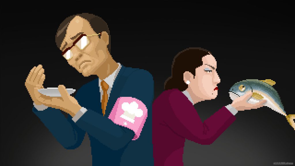 But wait. There’s more. At night, you’re doing Diner Dash with your sushi restaurant. You’re serving customers, doing tea pouring minigames, refilling the wasabi, fetching dishes to run up and down to the guests. (With a menu that you, yourself designed, based on all the fish you caught.)