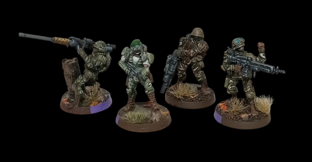 Camo Lieutenants: Scout Lts are OK but I feel like I’d rather go for the Tankhunter, having both higher Armour, some interesting equipment (including Minelayer!) and being slightly cheaper than the Scout. Plushenko is a weird piece for me. He’s priced at a rate that demands some sort of Active play (a T2 Sniper Rifle is a terrifying and unique weapon) but I’d be worried about the failure tolerances you’d have for a 36 point Lt who’s only got Dogged to keep him going. He’s fine, I guess, just make sure he only fights people in their worst range bands and accept that 1 out of every 10 games he’s going to get slapped in the mouth by a Crit and risk sinking your game plan.