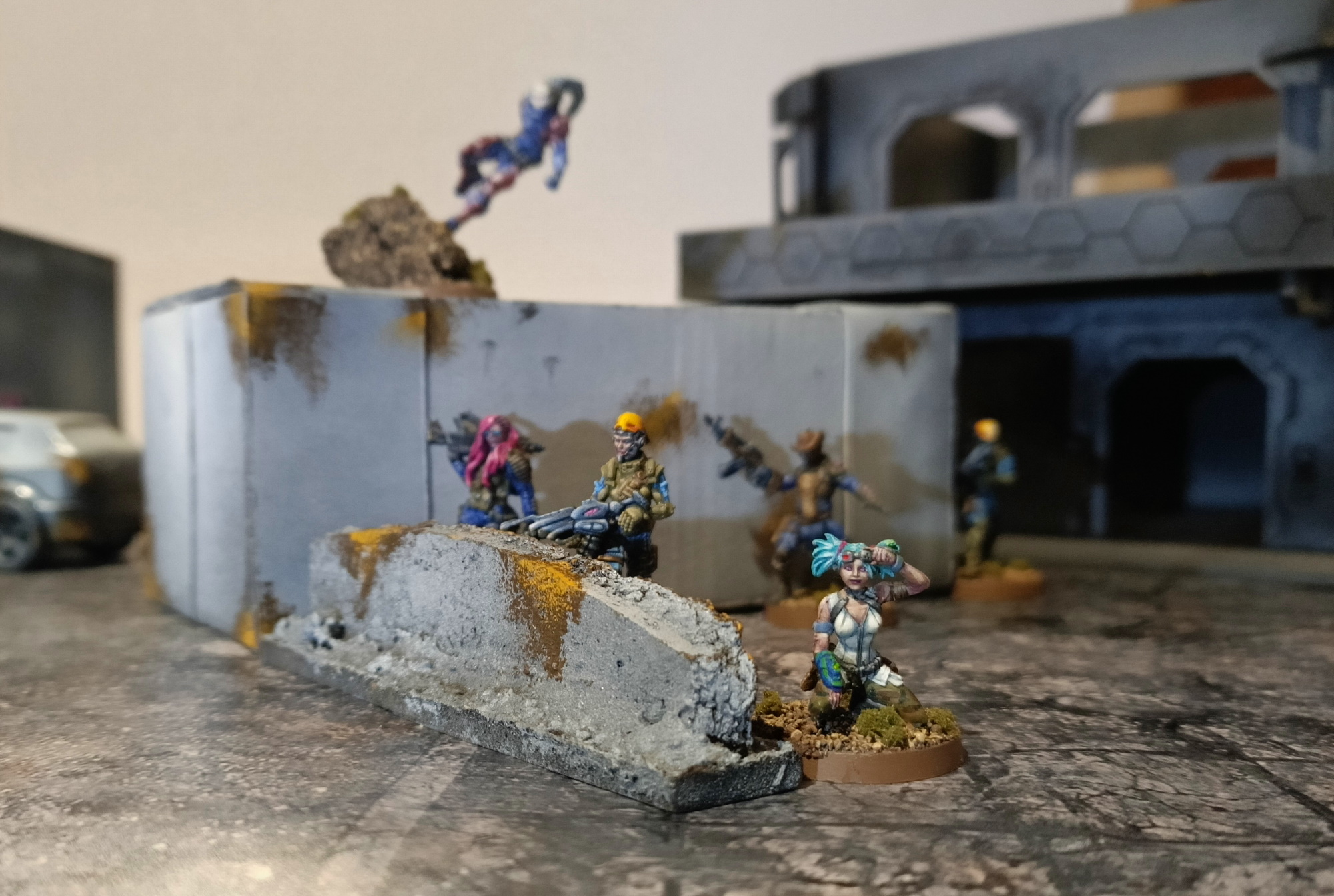 Most AROs shouldn't try to pin down the enemy right at their starting position. The only exception is snipers who want to use extreme long range to stay safe - starting with the enemy in LoF helps them to keep that advantage. In most cases, you want to force the opponent to spend Orders moving into position to engage you before the FtF rolls happen. That way, if you get lucky they’ve lost more, and if they win, they probably spent Orders activating a ranged gunfighter to take out your ARO - not a Specialist to do the Objectives or a mobile unit to rush at your DZ. Always try to have dedicated long-range ARO units, bar the exclusively disposable ones, in a position where they will be completely hidden if they fail (or choose to fail) a Guts Roll, or if they go Unconscious and drop Prone - e.g. behind a low wall. Then your opponent can’t finish them off easily. If you have a Doctor or Engineer nearby, they can move Prone and hidden and easily revive the ARO piece, restoring your control of the fire lanes. This combination is almost mandatory for things like Total Reaction Remotes and Core Fireteam snipers.