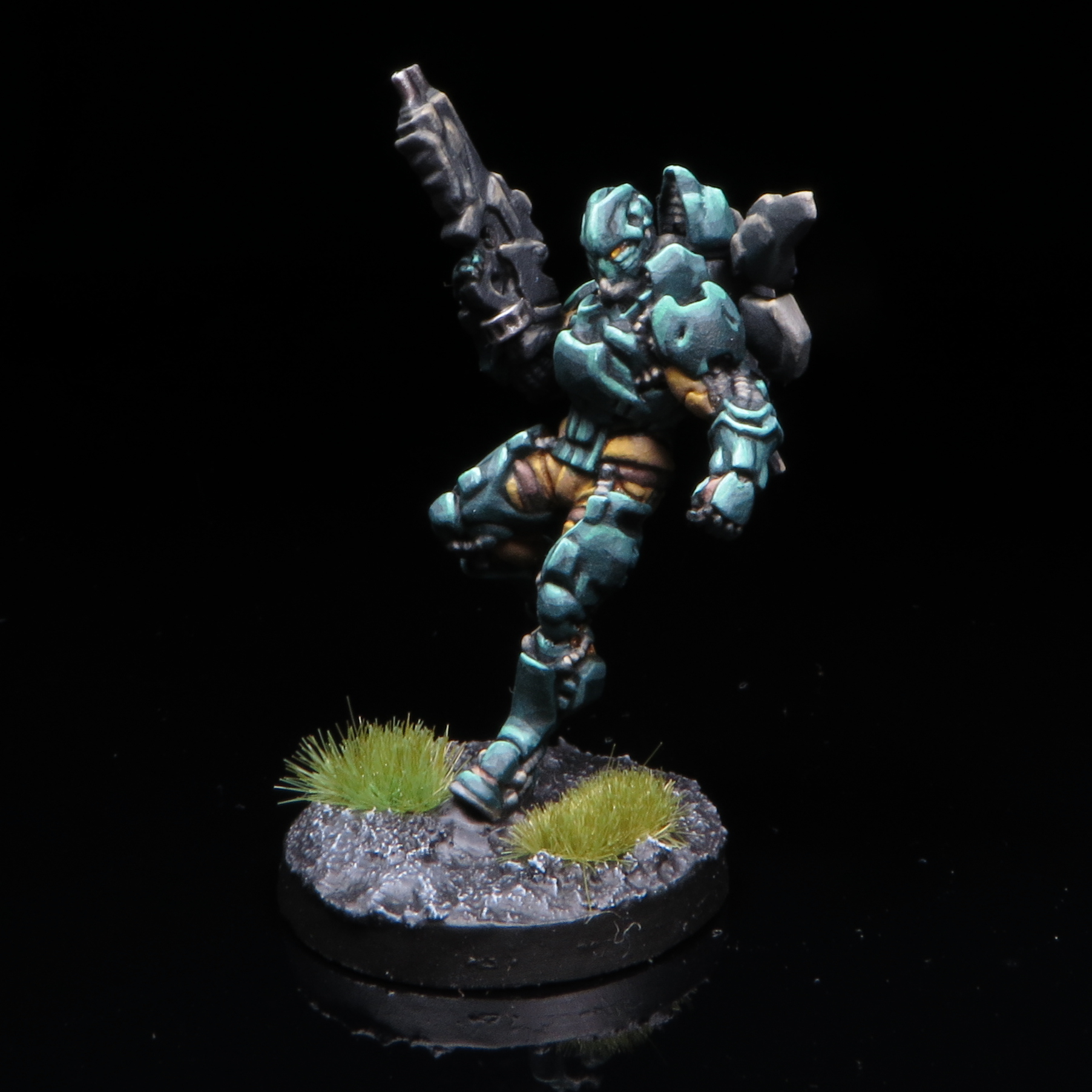 How to close with the enemy for the final few inches into melee? If you can move from outside of LoF straight into Silhouette contact, you can usually risk a FtF roll, using your high CC (and Martial Arts) against the enemy shooting. But this is still a risk, and if your opponent has a Direct Template weapon, he can offer a trade, stopping any further attack run (likely after you've invested a few Orders moving up). The standard Active turn response to getting templated on the way into melee is to Dodge - most melee specialists should have a 60-70% chance to pass, and a chance to survive any ARM/BTS roll if they fail, after which they'll be in melee. This is the best option when you are tight on Orders or are using a resilient model which is certain to survive one hit.