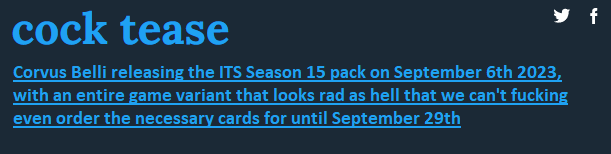 If you’re one of the Cool and Rad people that plays Infinity the Game then you’re lucky enough to have more Christmasses a year than other wargamers. Lucky you, ‘tis the season: Infinity Tournament System Season 15, to be exact: You can download the ITS15 pack here. Goonhammer's crack team of Big-Heads (or is that Big Team of Crack Heads?) is here to break it all down for those of you who took one look at the ITS 15 rules and declared: TLDR.