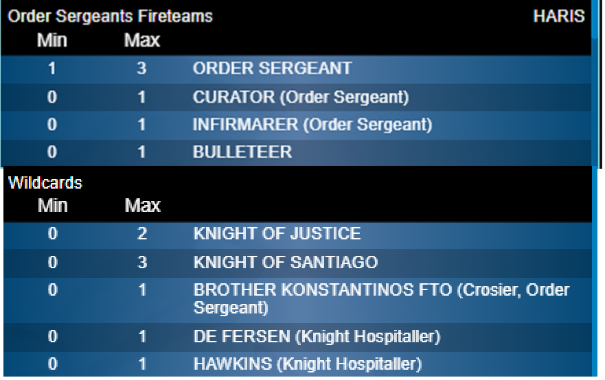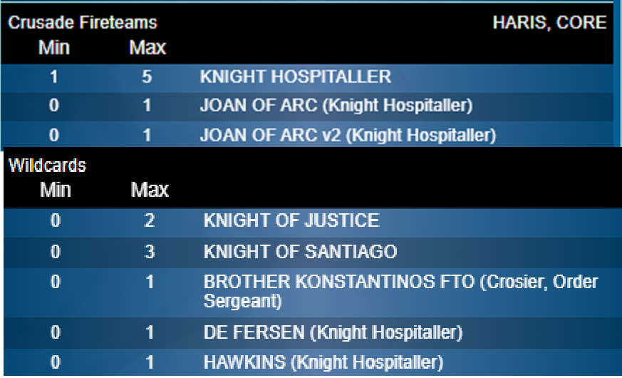 Crusade Fireteams - Haris - Hospitallers and Characters
