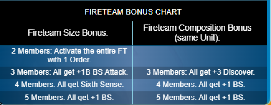 At the same time, Fireteams were reworked by making it far easier and clearer to compose them with mixed units. You don’t get as much of a BS bonus, but you will probably find it easier to mash the units and capabilities you want to use together.