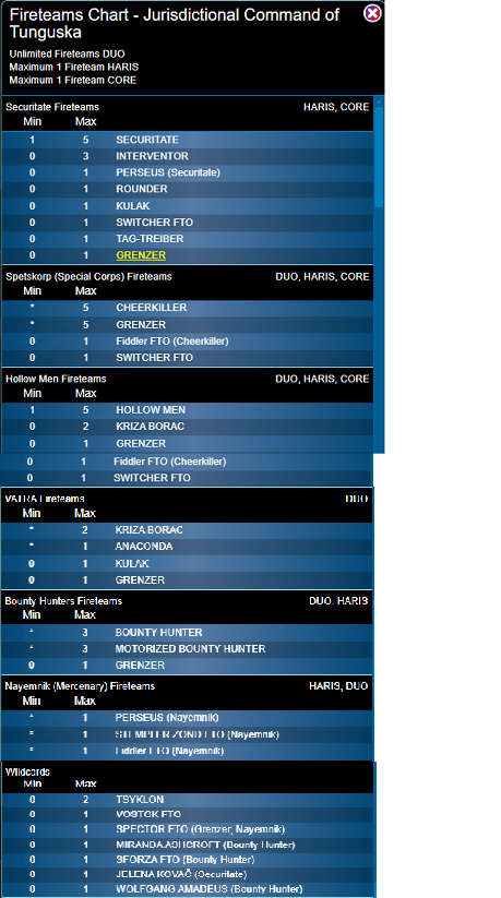 Tunguska has an elaborate set of Fireteams for different troop types, but it's well worth getting to grips with, there are some neat combos here.