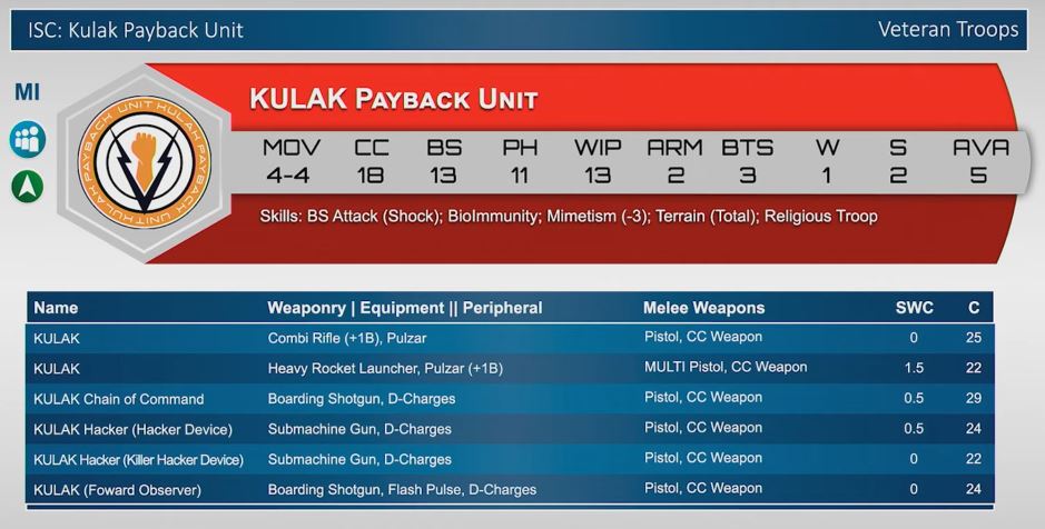 Musterkrux: I think we need to see a Commlink +1/+2 profile in Ariadna. I've previously predicted that CB would eventually release some sort of rule that allowed some factions to pay a premium to break the trooper limit (My propsoed example was a Minuteman Lt profile in USARF, if you want an example of how much of a tax you'd have to pay for the privilege) and, man, if Ariadna don't get an option to run 16-17 troopers via Reinforcements I will be