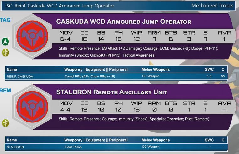 Most of us here at Goonhammer were confidently predicting that the bulk of new profiles previewed last week, and new unit names shown in the Reinforcement rosters, would be available in vanilla Factions and/or Sectorials as well. This is not the case! Almost all the new units are exclusively available as Reinforcement picks. The exceptions are the Squalo Mk2, a new PanO TAG, Maximus, a new TAG joining Aleph & PanO, and a couple new units can join Main Sections of Qapu Khalki (while being Reinforcement-only for vanilla Haqqislam). Probably most importantly, the Caskuda, as well as being a Reinforcement option TAG for Combined Army, is also available in Main Sections as a Combat Jump TAG. With explosions. No deployment zone is safe.