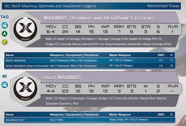 - Genghis Cohen: the trooper limit will be 15-17 models now, depending on Faction/Sectorial Commlink options. As stated, these don't usually give the player a choice, your faction gets the number it gets. There's no prescription as to how many models you need to have in the Main vs Reinforcement Section. But the amount of points/SWC is fixed. So in practice, given the relatively narrow Reinforcements rosters, most factions will have a practical limit of ~5 Reinforcement models. We'll go through the Factions below, but it's interesting to think that many lists will have Main Sections in the 11-13 model range, so splitting Main Section Combat Groups is now something to consider.