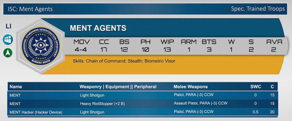 Musterkrux: Remember my earlier comments about the Mobility Kill Meta, taking your 15 point Ment Agent around a corner and asking your opponent if they're willing for their premiere attack piece to take 3x RiotStopper shots (4 in a Haris) is a wild proposition. If they choose to dodge? Remind them that you've got an SMG with AP-rounds...