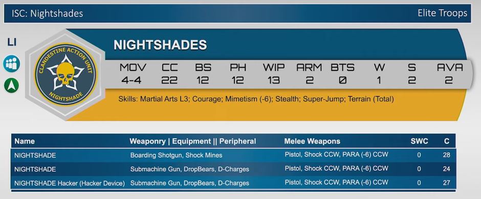not take Mimetism-6 single wound models in their Reinforcements rosters. Nightshades hate Claymore Mines: