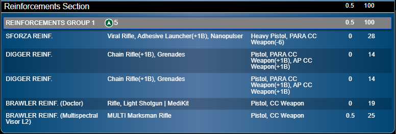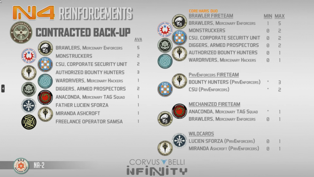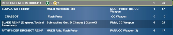 hate the reinforcement options but I think the real killer is the tax of having to take a Wardriver (who takes up a Combat slot, SWC and has limited integration with Fireteams) who only brings Commlink +0, unlike most factions who get +1 at least.