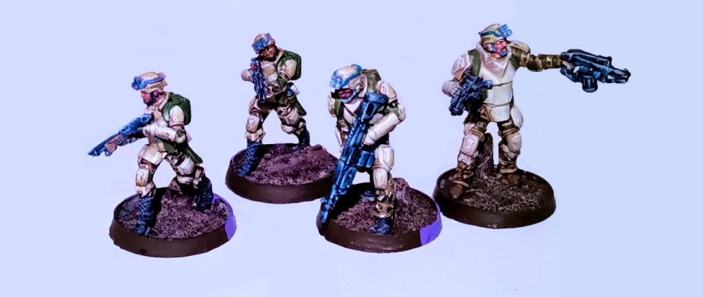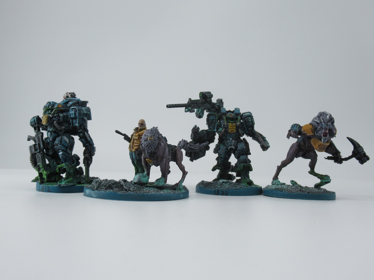 Shrouded have Regeneration as their gimmick, but are really remarkable for their Dazer - a piece of equipment that can create a massive rough terrain zone. Movement controls are very limited in Infinity, and occasionally you'll end up on the wrong end of one of these guys in Biotechvore or the Armory or something.