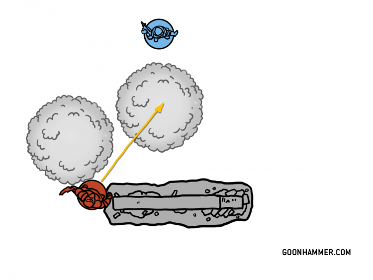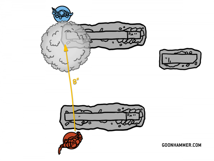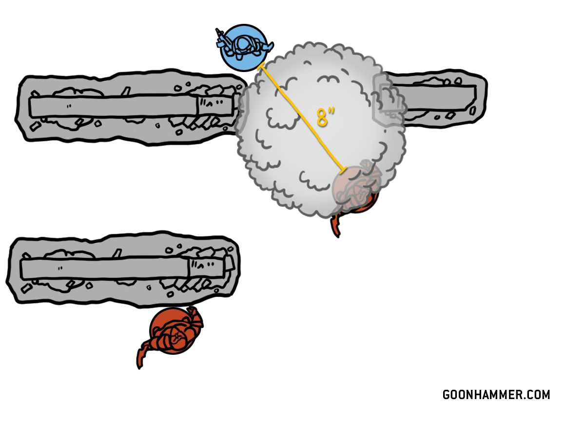 If you have a powerful MSV overwatch piece and are lucky enough to also have smoke in your faction, you can do the suicide smoke toss technique. When an enemy model comes out to engage your MSV piece, an adjacent warband can throw smoke so it lands covering the MSV troop but not the warband itself. This means the rolls are