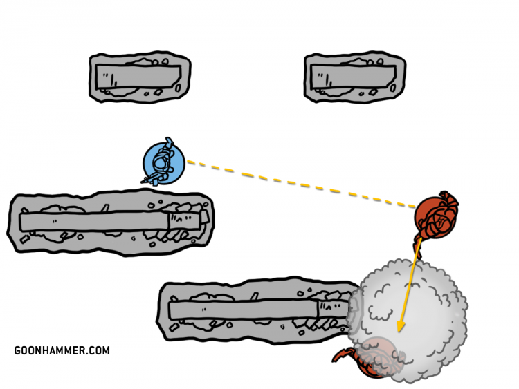 This is the most basic technique, a brute force with numbers. It's very order inefficient - costing you an Entire Order and giving you usually a 50/50 chance of landing the grenade anywhere within 8 inches. Sometimes that's the correct play but do realize you're making a coin flip to pull it off and sometimes that'll just go against you three times in a row. Also if you're doing it within zone of control of an enemy model that model will try to dodge out of the impact which will make your life even more inconvenient.