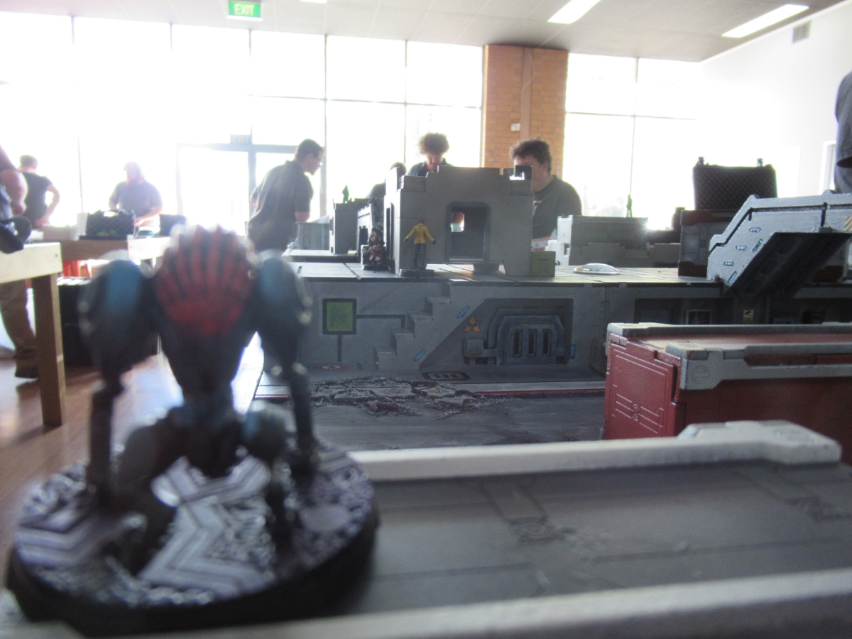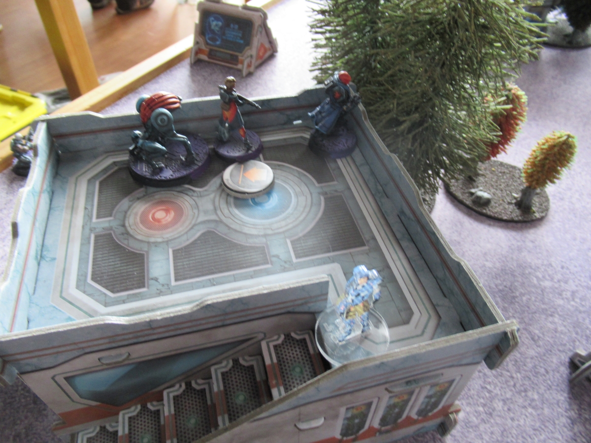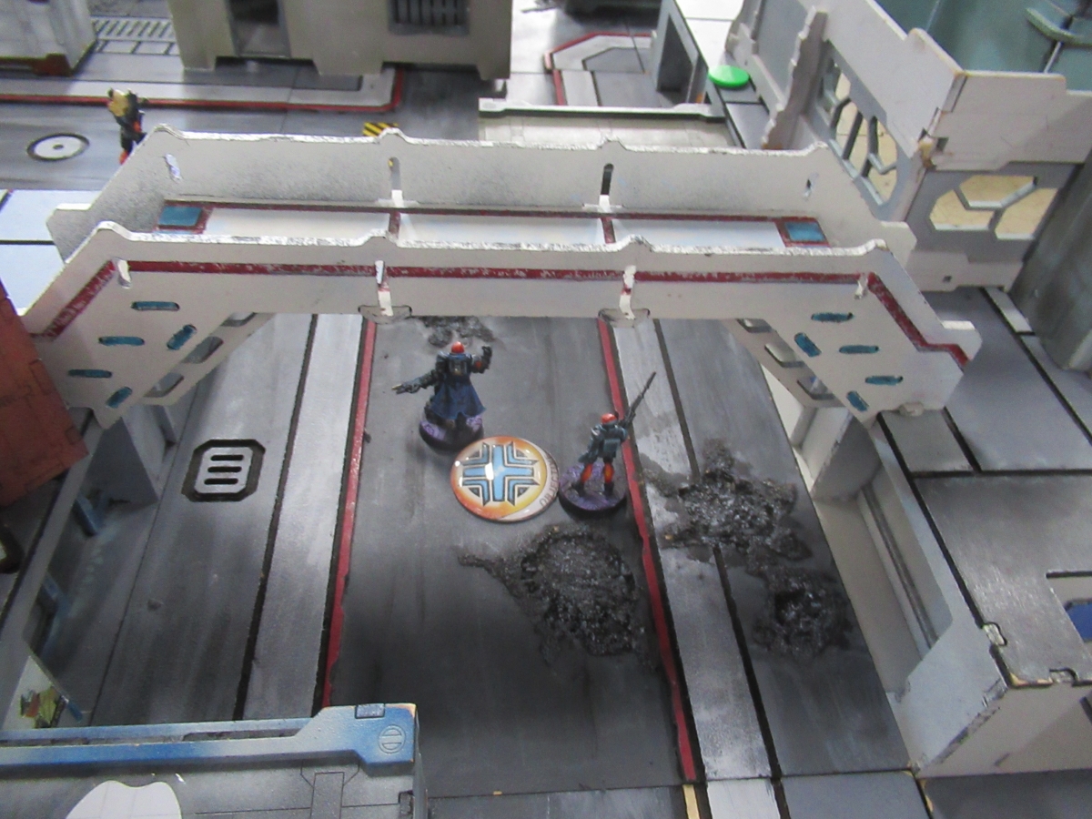 Looking at where his army was I was pretty certain that if I played my turn right I was going to put him into retreat - and so I planned my entire turn around that. As my link cut across the table to demolish his Haris team it detached the Betatrooper and the Bronze to stand on the central objective (both of them because I was worried about that Grey getting healed by a paramedic and taking a shot), and then sent Hector through to clean up the right hand objective. And there's just simply not much that beats a linked plasma rifle in close proximity. I had learned from my mistakes in the last tournament and played this entire one out correctly.