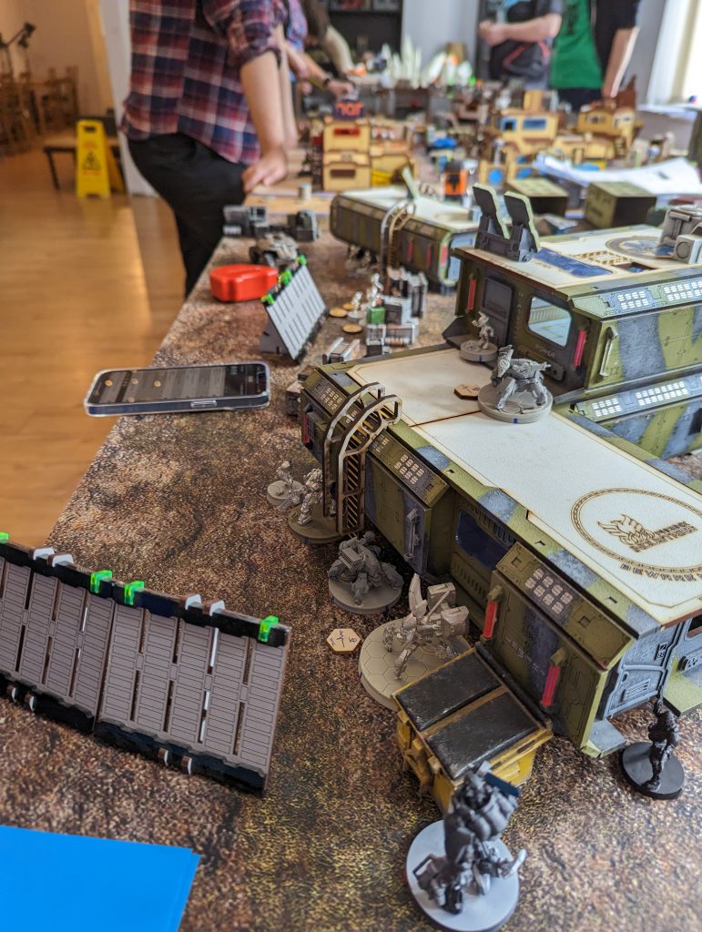 I had a nice day out at the event, saw some friends, enjoyed the atmosphere and general immersion in Infinity. The full tournament results can be seen here. The event was won by my Steel Phalanx opponent from Game 2, with Tohaa in second place and me in third, since it was such a small event. I have to say I was a bit disappointed in my gaming performance. I won one scrappy game where I made some dumb mistakes, and we missed some important rules interaction; I only won that one from luck and some opponent mistakes. Then I played a genuinely good player and got stomped. Finally I had a rather easy match-up and stomped someone else. So not the most fulfilling from the viewpoint of someone who wants to practice the game and grow better. It was also eerily similar to the pattern from my last tournament. I think I’ll use Corregidor next time, partly to return to their all-round flexibility, partly because I’m painting new stuff for them, and partly because I want my Intruder and guided missiles if I have to fight that bloody Steel Phalanx next time!