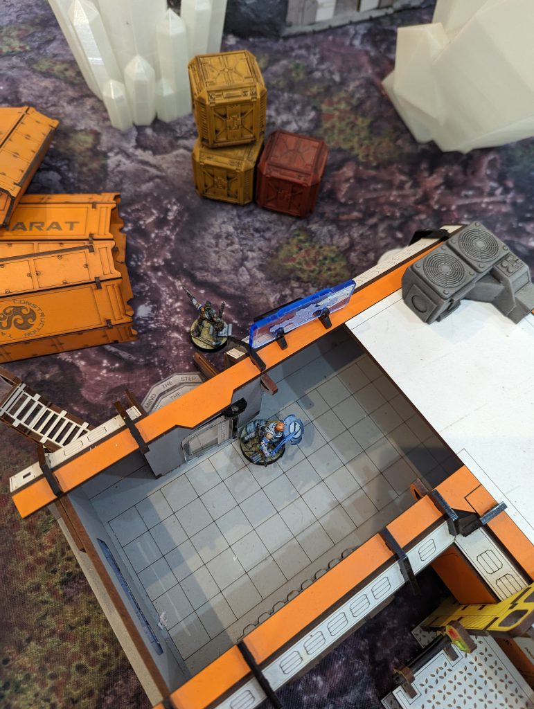 I was clearly going to be in Retreat at the start of my Round 3, and my opponent had little to do. We rolled it out and determined he could activate two more consoles, and Phoenix was still securing my HVT, so we agreed to call it there. I didn’t take my third turn, since I would have been unable to score 2 quadrants or to get any consoles - Atalanta and Phoenix had me locked down. I could have rolled a Lt panzerfaust shot at one of them for spite, or sacrificed my Crosier paramedic to try and bring my Teuton ML back and try the same with him, but honestly it wasn’t worth it.
