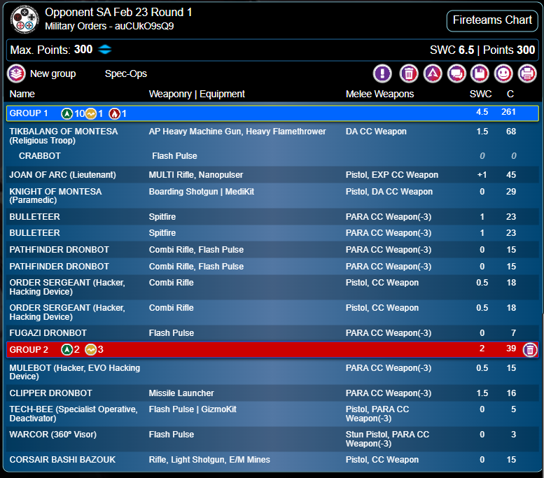 I was happy with the structure of this list because it enables wild offense. The Hsien can clear hard stop AROs, or I can send in the Ninja / trade the SMG Motorised Bounty Hunter to remove something (although I would struggle to do all three of these at once, due to Orders). That leaves the entirety of Group 1 Order pool to push the Su Jian Duo. It was interesting to see how that theory panned out. I could experiment with removing the Crane, who is more redundancy than my first choice of attack vector, and the SMG bike, and that would let me include a Pheasant for Chain of Command, Tao Wu for Counterintelligence, and upgrade my Ninja to a regular Hacker with a much more useful SMG. That would further enable the Su Jian push, and deal with my vulnerability to Loss of Lieutenant. But arguably that's a lot of direct power to give up, for contingency planning.