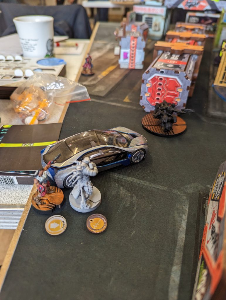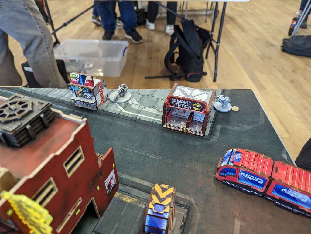 MO dominate the table. Suppression everywhere. Bulleteer (just visible on far left); Pathfinder in centre; Tikbalang on the roof.