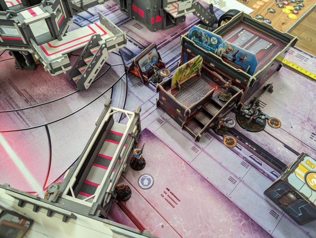 This resulted in a 5-0 win. I had a very healthy 286 VP remaining to my opponent's 28. Definitely good enough for government work, but I realise in hindsight that I should have looked for a way to keep the game going to Round 3, which would have let me score a bit more. I couldn't have killed anything, but I could have cleared the E/M mine with the MBH and Dodged, just to leave him as a speed bump, then laid smoke onto the beacon with the Celestial Guard, and claimed it with the Ninja. Holding it through the end of Round 2 wouldn't have been absolutely guaranteed, but highly possible, and I could hardly have failed to remove the surviving enemies and claim it again in Round 3. As it was, the game ended due to Retreat at the end of Round 2. I couldn't score my Classified, it was Rescue and I didn't have anyone in a Null state! This sounds like nitpicking, since in most tournaments I'd just be glad to have the win, but I could have placed one higher in the rankings if I'd eked it out to 7-0.