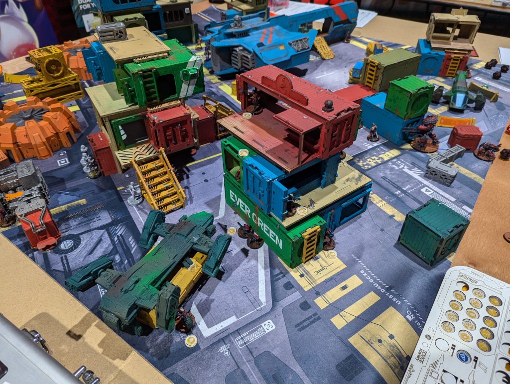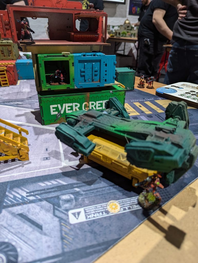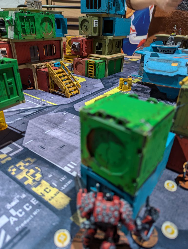 The UFK moving towards my left flank, mostly screened by the container stacks.