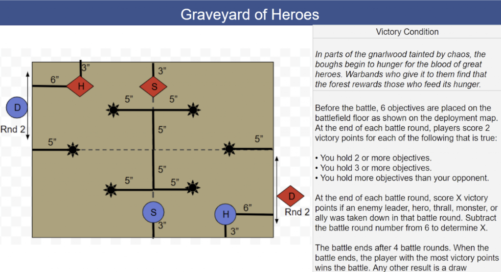 If that’s too abstract, here are 3 battleplans that lean heavily towards one of those three directions. These are good intro examples - but know that most missions try to blend two out of three, since having multiple things to think about is fun. Note that only one of these is from the Warcry Core Book. It’s rare that you will go to a Warcry tournament anywhere in the world outside of Nottingham and play more than one GW-created mission out of four. The story of why the community took matters into their own hands is long enough that it’ll have to get its own article one day. It appears GW is listening, as they’ve very recently (as in the last two days) begun releasing battleplans that look much like iterations on what the community has been creating.