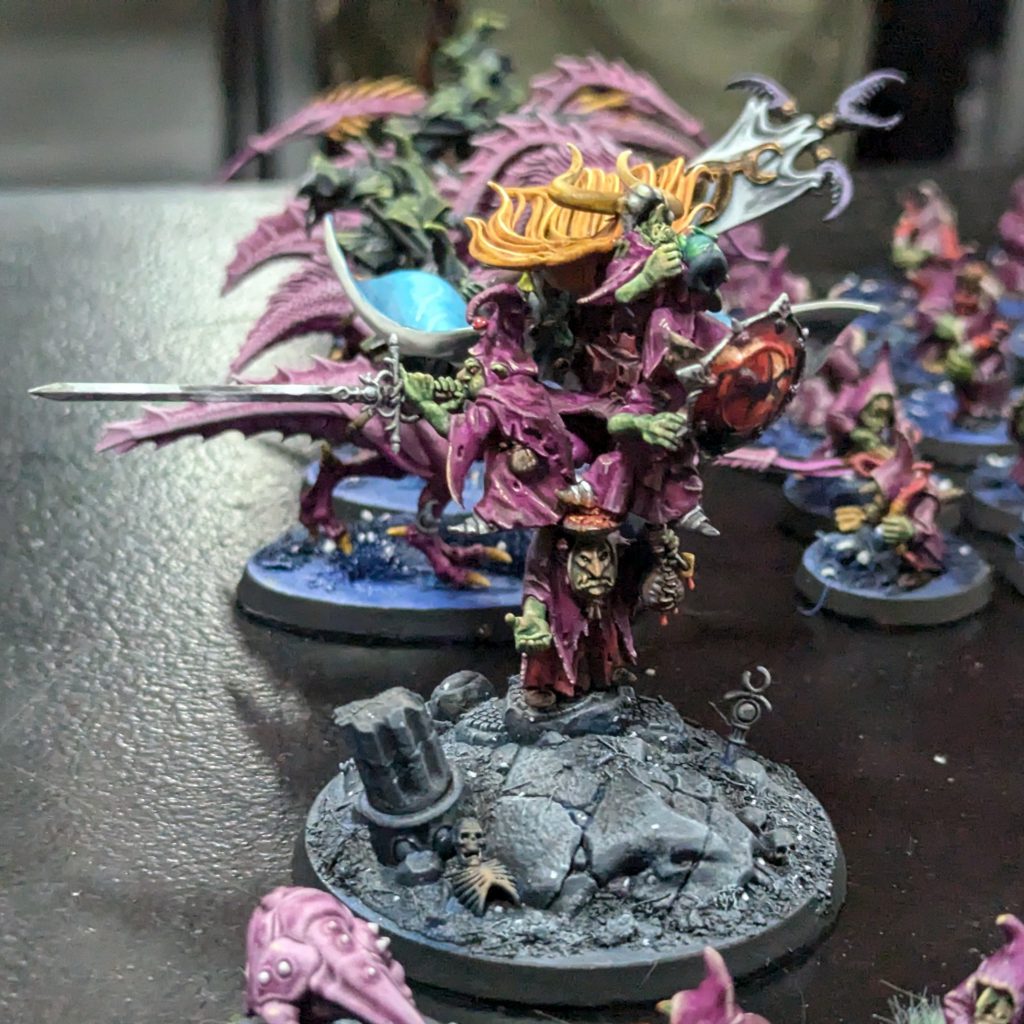 I have to note Dave’s beautiful army - although running as Slaanesh, every model was either based on or converted to include Gitz models, and painted to a fantastic standard. Of particular note was his attention to making sure that silhouettes matched, which I think is best exemplified by his Sigvald conversion below. The army used a lot of parts from both the Slaanesh and Gloomspite ranges and can’t have been cheap or easy to make, it definitely wasn’t just a case of someone choosing to run an existing army as something different for the sake of being competitive at a tournament.