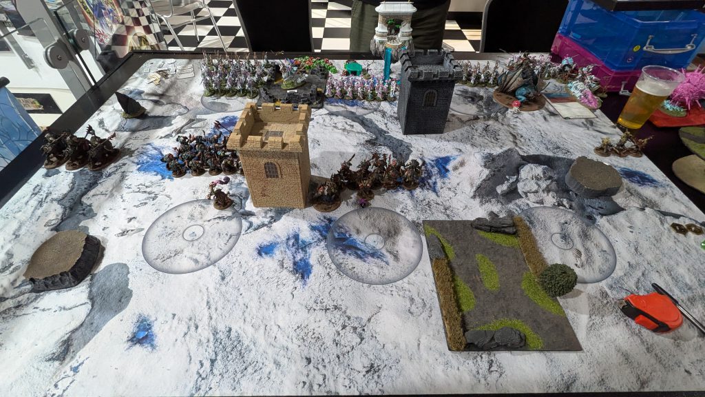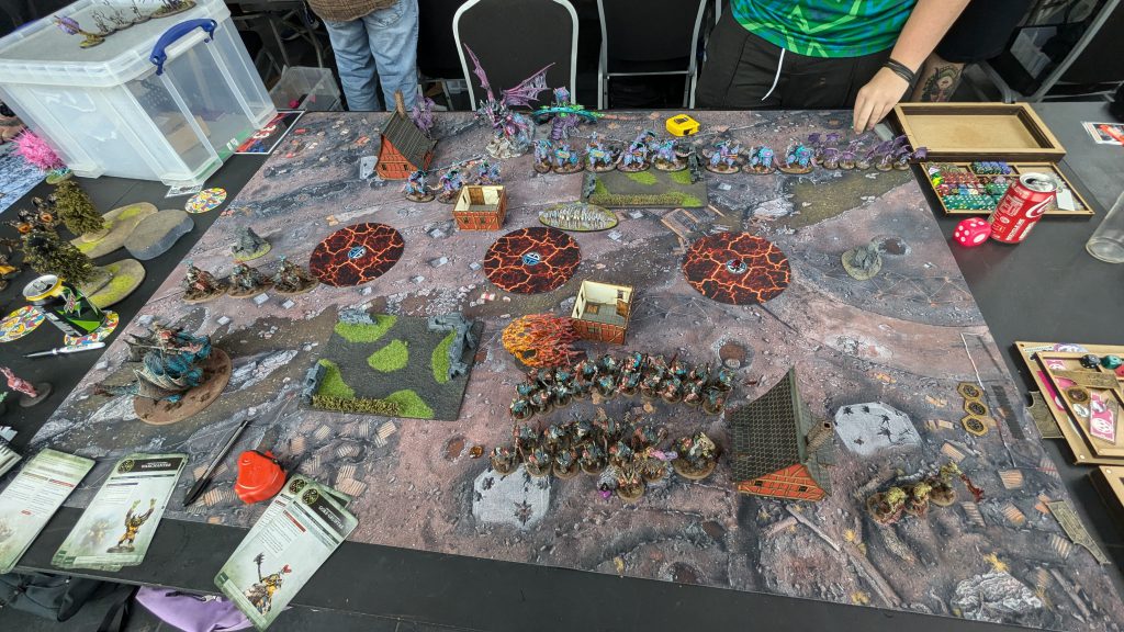 A two-two record going into the final round was exciting, so I was a bit disappointed to see another shooting heavy list. Grant had a fully-Vanari army meaning it was all also on a permanent -1 to hit, not ideal for Orruks hitting on fours! Shout out to Grant for flying down to the event from Scotland with the game’s most fragile army, you have to admire the commitment.