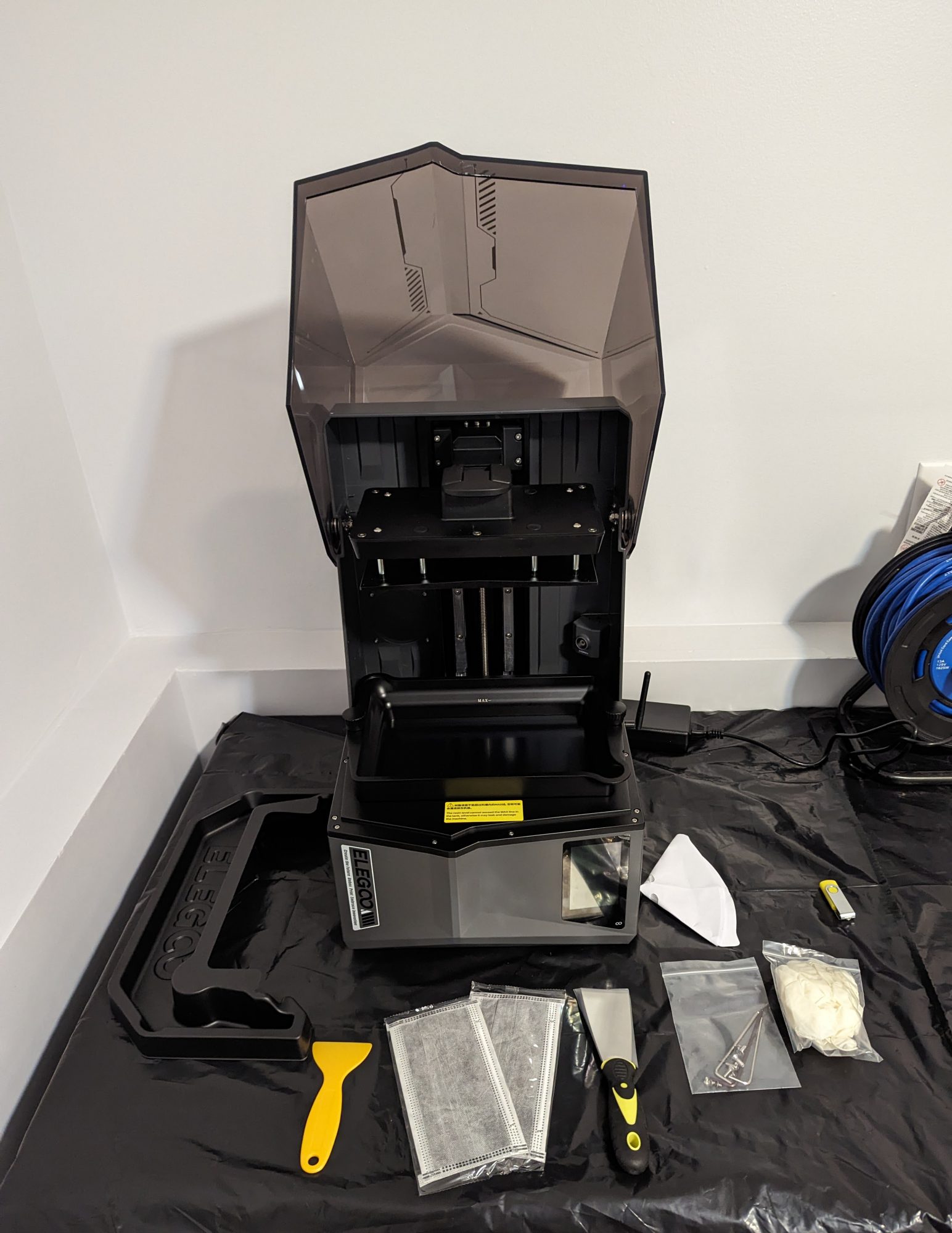 Setup is trivially easy; you unbox the components, plug it in, remove the film, install the vat, and you're good to go. The system handles all of the calibrations, self-checks, and leveling by itself. It took longer to put my wifi password into the printer through the touchscreen than it did to set everything up. One thing that I did experience was that the unit is extremely sensitive to not being level. I filled up the vat to the MAX line with resin, and the slight angle of the printer made the machine think that that vat was going to overflow. Adding some shims underneath helped balance everything.