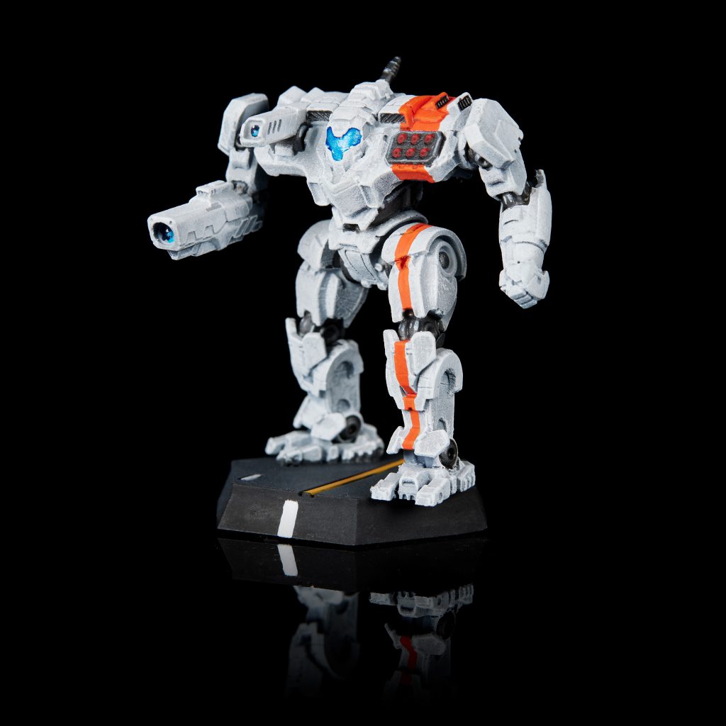 After the big knight in July, August moved me back to painting Battletech. I liked the orange and white scheme from the knight, and wanted to paint a group of mechs that were based to match my city board, so started up a whole new force. One of the wonderful things about the game is how easy that is, as you just need to paint a handful of mechs to have a playable lance.