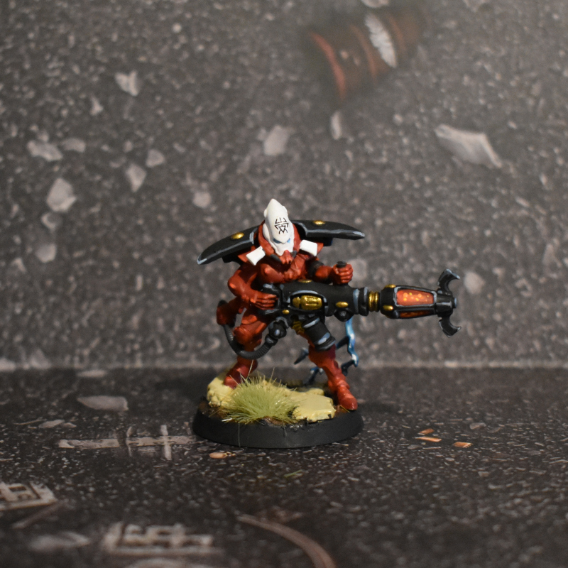 Painting: I do not have a preference for custom vs traditional schemes on my Aspects but will usually create some blend of the two. The big thing for me is to make sure the scheme is not too similar to a different Aspect in my army. The Warp Spiders are the Aspect in my army that don't have a good scheme - I don't like the traditional scheme because my style doesn't lend itself well (looks samey to Fire Dragons) and my previous scheme is both too close to my Avengers and I'm also not enamored with how it looks on their bulkier frame. So I Google'd “colorful spiders” and after perusing some terrifying images I landed on a yellow/grey scheme that I think pops well with red accents and gold trim. Unfortunately, I didn't get my Fire Dragons painted in time for a picture.