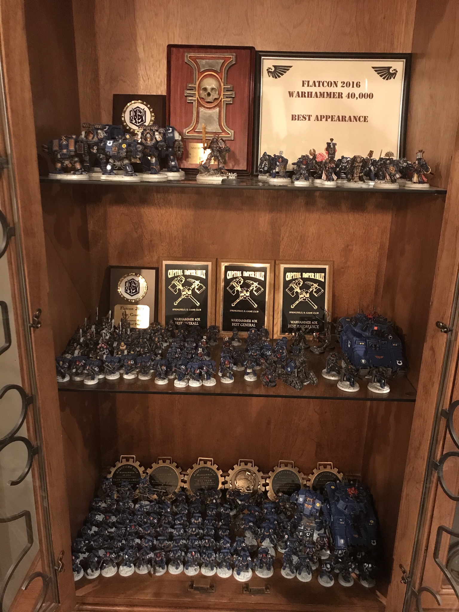 But first, a little about me: I’ve been a fan of Warhammer 40K since I was a teenager and like most of you I was instantly hooked by its unique setting. Unfortunately, my initial foray into the hobby was a bit of a false start, and it wasn't until the end of 6th Edition that I truly entered the fray by starting my own army. In less than 2 years' time I found myself attending my first Adepticon in the Spring of 2016, and boy was I hooked! As an Illinois native I am fortunate that the world’s largest tabletop wargaming convention happens within several hours of where I live, and the amount of my hobby time dedicated to it only increases year after year. Basically, I am an Adepticon apostle here to spread its truth and light to you, the ignorant and debased reader. I consider myself a competitive player, but I am not what some would call a “meta-chaser” I’ve lovingly devoted my time to only a single army over nearly 6 years, and I’m keen to impress with my painting just as much as my tactical “skill”. This being said I still show up to any event I participate in with an intent to win, and I’m something of a medal/trophy chaser. Yes, that's right, I am on the hunt for all the dumb skull trophies, and as many high school quality plaques I can get my greedy little hands on to fill that void in my sou...I mean display case!