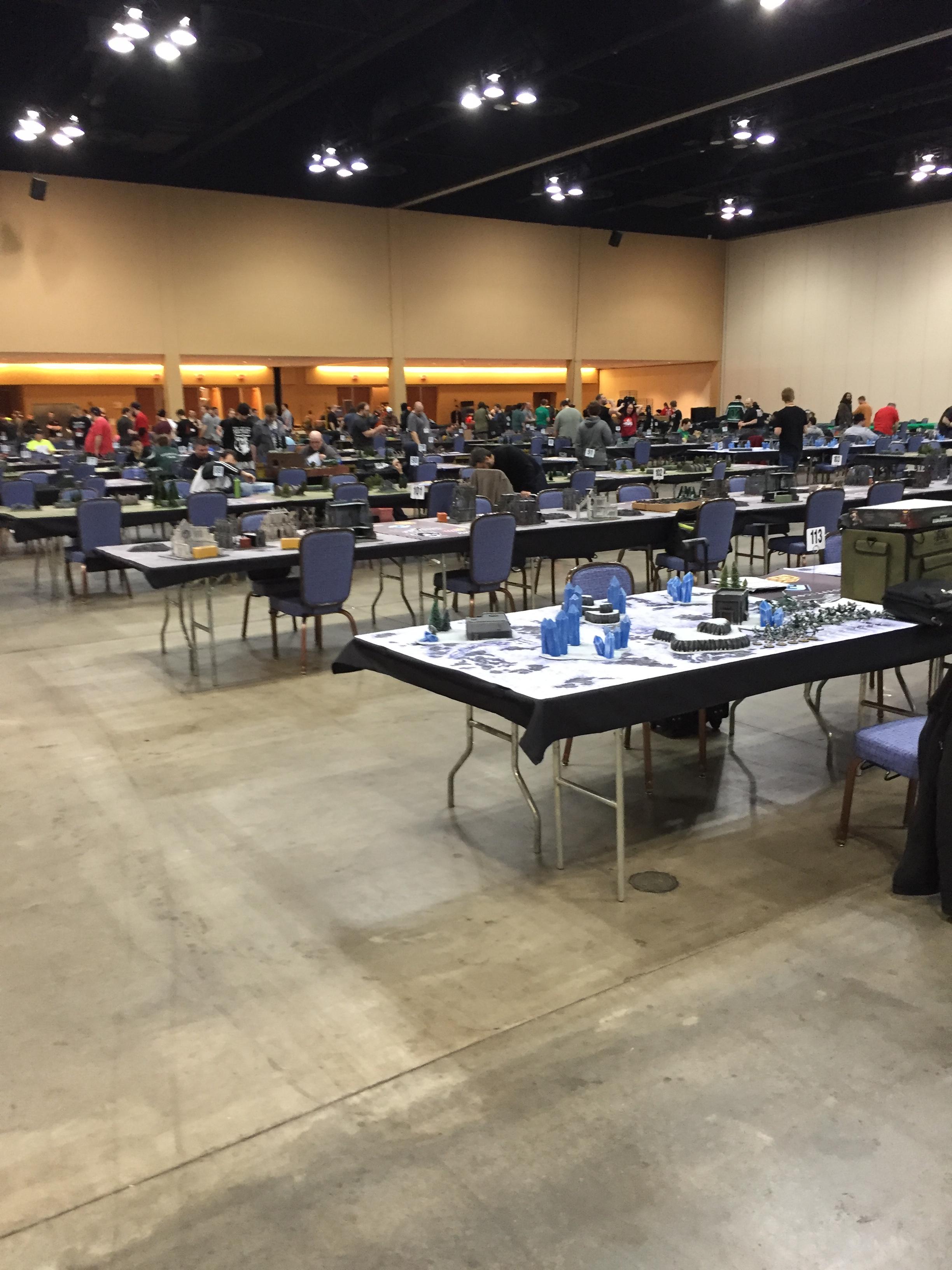 ) at the Renaissance Convention Center. The primary body of the convention takes place in 3 massive halls, but also spills out to fill up all the other various rooms and lobbies of the convention center. This means you will find entire halls given over to current Games Workshop or Fantasy Flight Games products, while still finding small rooms where the same 10 dads can be found playing their annual Warhammer Epic tournament that they’ve been doing since the convention was founded.