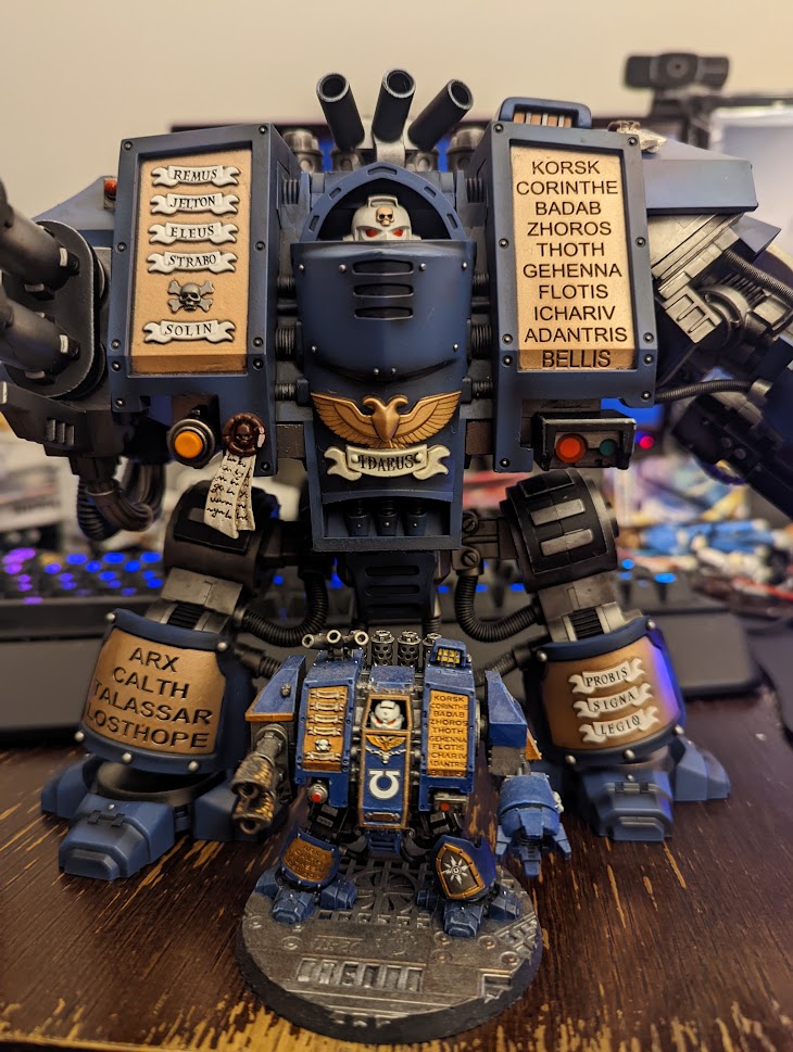 Figure-wise, I'm the proud owner of five Infiltrators, one Bladeguard Veteran, a Venerable Dreadnought, and an Invictor Tactical Warsuit. Most of the stuff remains hidden in their packages because I'm in the process of moving, but I did take a few of the figures out to showcase.