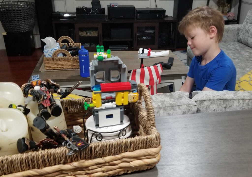 The Chaos Space Marines are attacking the LEGO pirate ship and also the fake candles, I think?