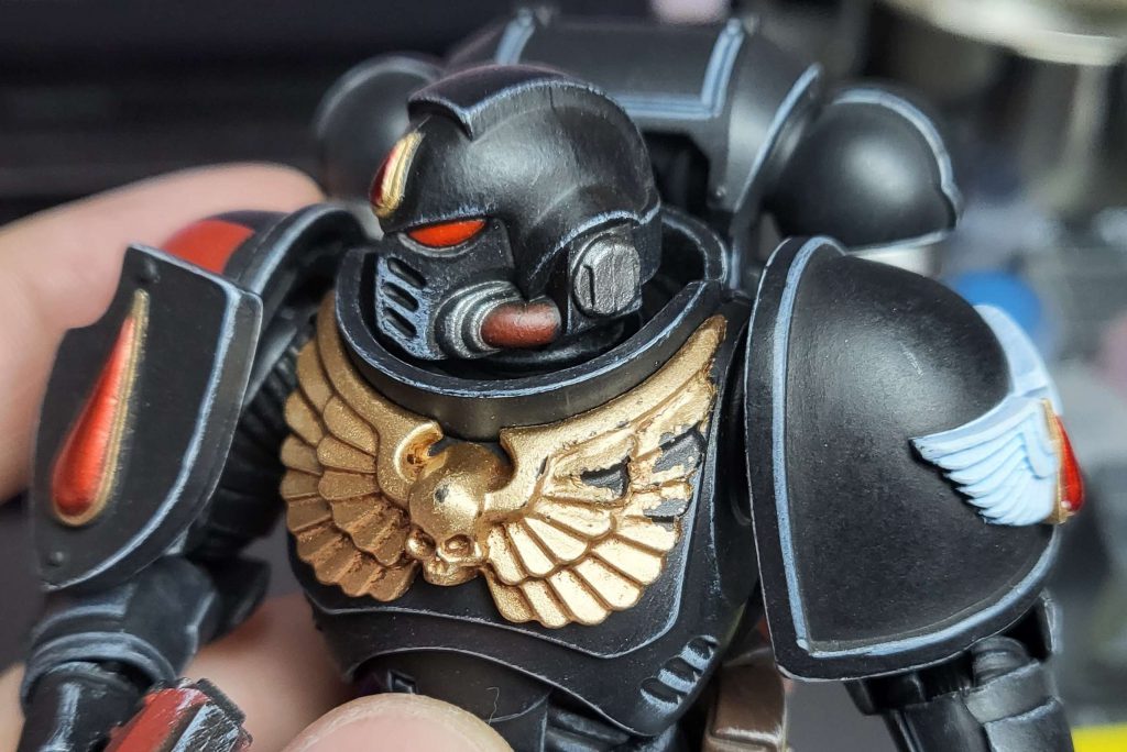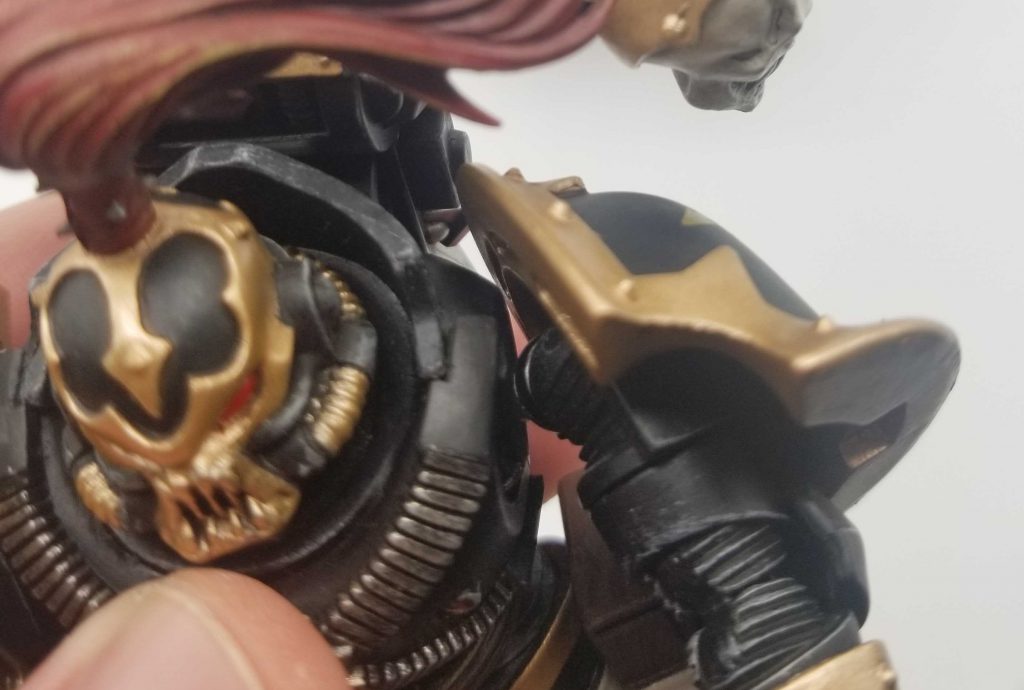 toothy alternate head, as well as open and closed hands, a pistol, and a power sword. The gold deco on him did not have issues, so maybe the Death Company issue was a one off.