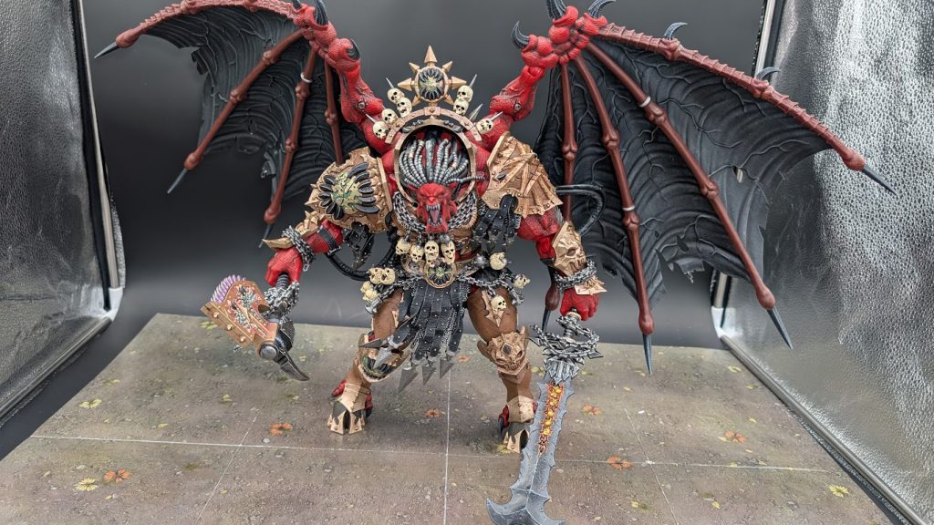 Within there are four trays: one tray containing Angron, his accessories, and his tail; two trays with a wing each; and a tray with the sculpted base with three articulated support arms. I initially overlooked the sculpted base tray, because I did not recall the model coming with a sculpted base. This would come back to bite me in the butt several times when preparing for this review.