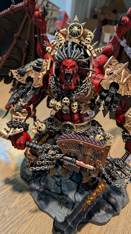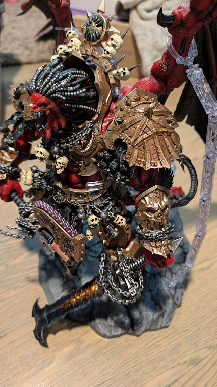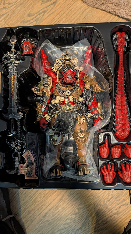Yeah, this one is the first Joytoy I was actively disappointed by. The rest of the range is extremely poseable while also standing on its own. Angron, by contrast, is basically stuck in one pose to mange the figure's weight. It also takes up way too much of my shelf because of the wings and the base in a way that none of the other Primarchs take up. It's also extremely expensive, costing the same as a HasLab playset. The price, combined with the space requirements and difficulties assembling, posing, and standing, make this probably my least favorite of the Primarchs released so far. I'm very disappointed in this, because Angron is a fun model to build and paint and filled with lots of character on the Tabletop. Nevertheless, because there does not appear to be a Warhammer 30K Angron in the pipeline this is the Angron on my shelf.