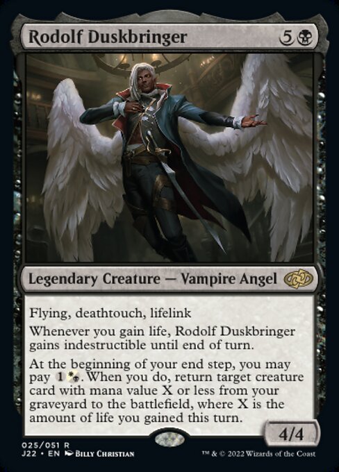 Loxi: Rodolf is cool, but he's a bit expensive and combines two archetypes that might be a bit hard to slap together. Being both lifegain and reanimator is unique for sure though, and oh BOY he's got good keywords as well as built in protection. I don't think he's my cup of tea, but he's gotta be good if the niche appeals to you.