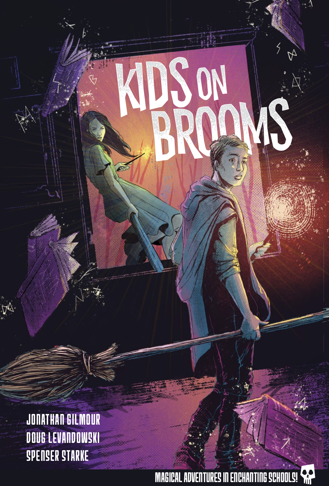Kids on Brooms tackles the magical school genre, full of clear references to the Harry Potter series. Most of those references come with a note of derision, but I’ll get more into that later.