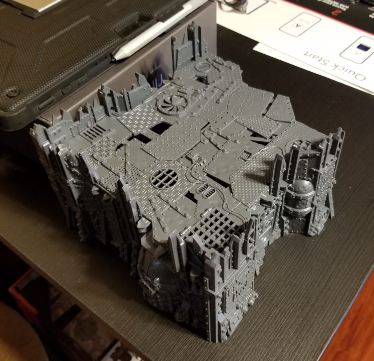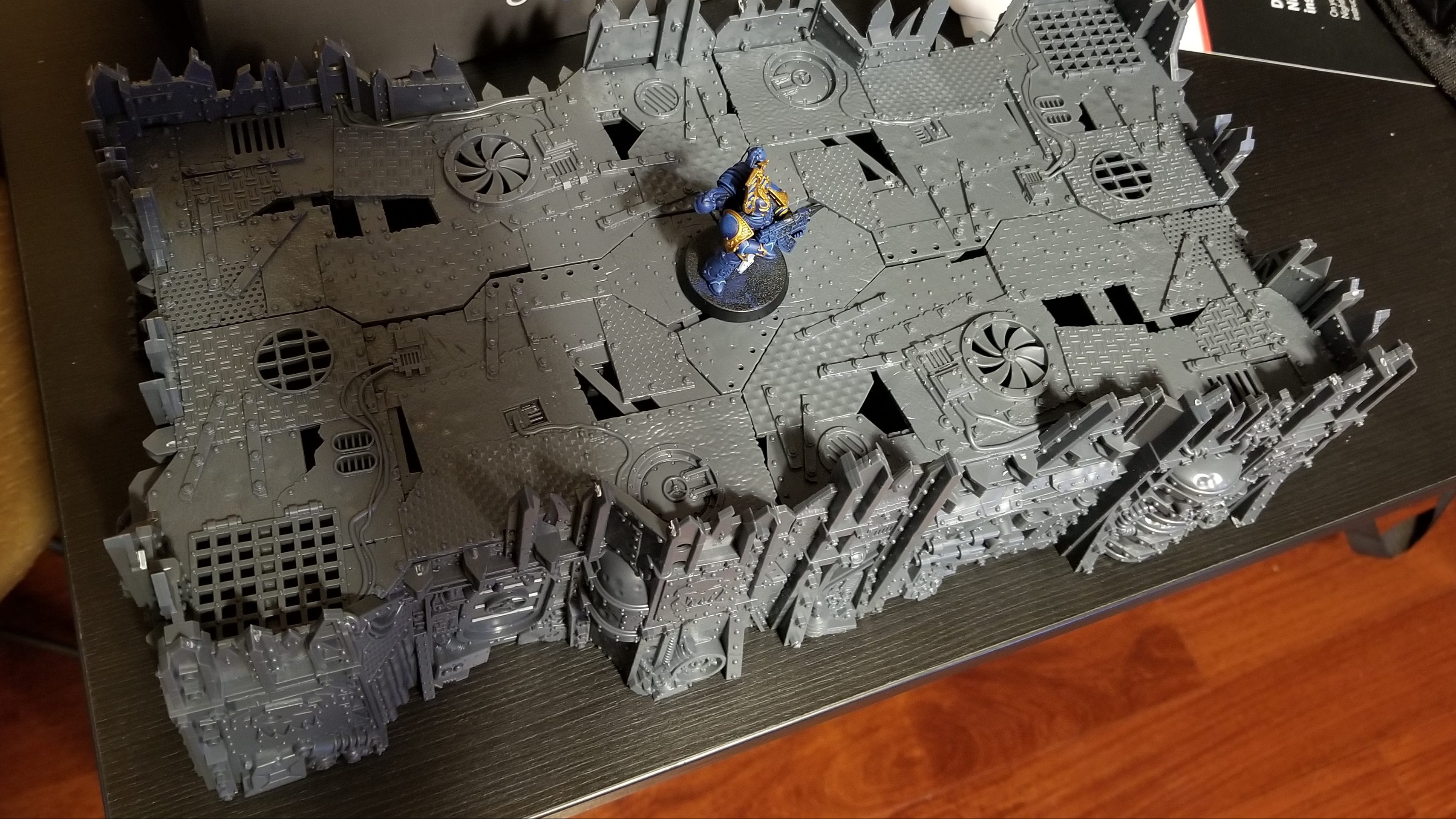On the upside, the coolest part of the terrain is that you can put the corner structures together and make larger buildings. The campaign missions for Octarius take full advantage of this, having you do many different configurations of the terrain, including this half-building made from two of the corners.
