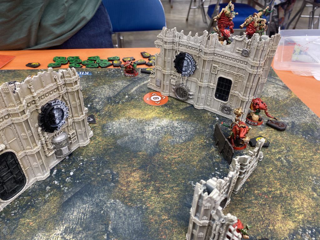 Funnily enough my second round was against Chris, Tim's friend, who was playing an identical Kill Team. Both Chris and Tim had taken the time to convert their teams to really feed into the silly nature of the Gretchen with Tim's Ork Boyz actually being Gretchen disguised to look larger, and Chris's all disguised as Squigs. I had to hand it to both of them, they seemed to be having a great time and enjoyed playing into the gimmick. It is also worth pointing out that there had to be something to their strategy, as Chris had managed to beat his previous opponent, Hunter Clades, 17-15.